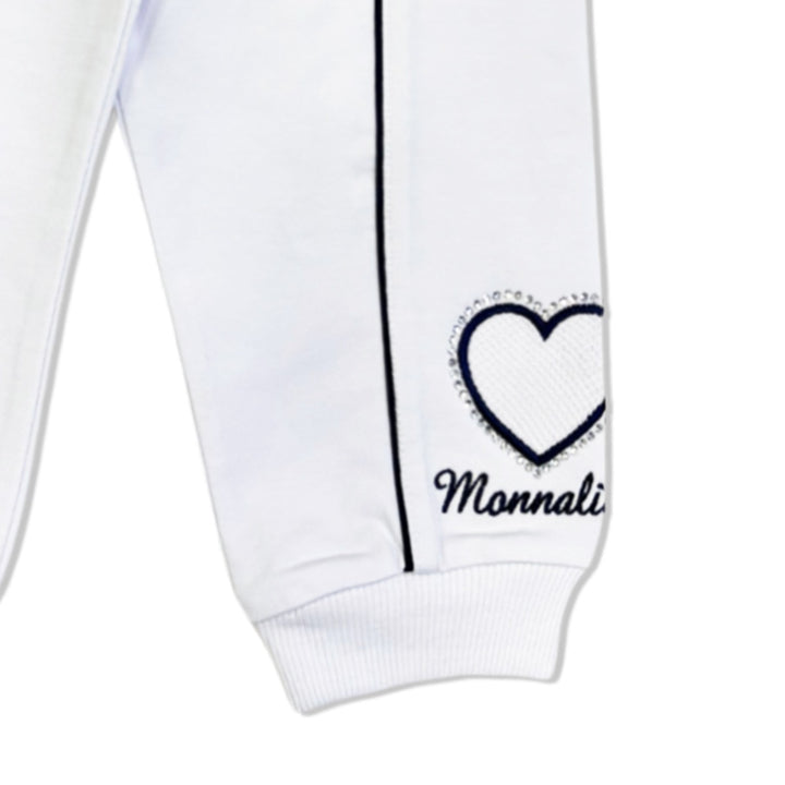 Essential for the wardrobe, even for the little ones, the practical tracksuit trousers in a fashion version, with profile and logo heart