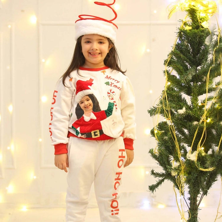 Girls White Xmas Personalised Tracksuits feature a soft white base with festive Christmas-themed prints and custom name detailing. Made from comfortable and breathable fabric, this tracksuit includes a cozy sweatshirt and matching joggers. Perfect for holiday gatherings, playtime, and adding a personal festive touch to the season.