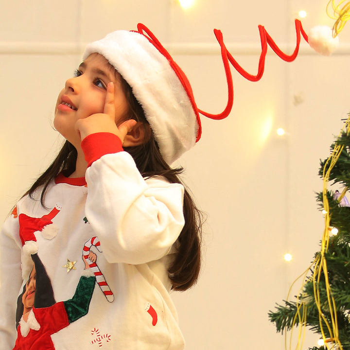 Girls white Xmas spring caps in festive design made with soft, comfortable fabric Perfect for holiday outings and Christmas celebrations adding a cute seasonal touch