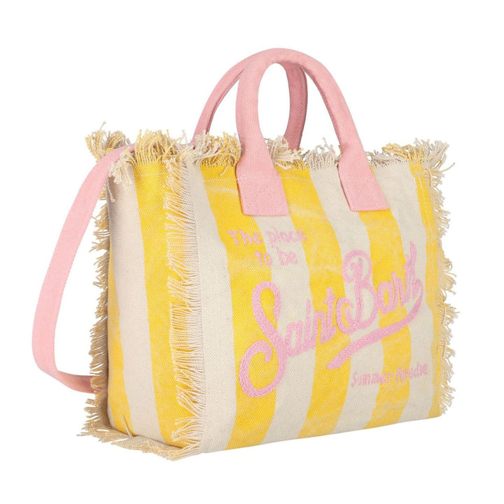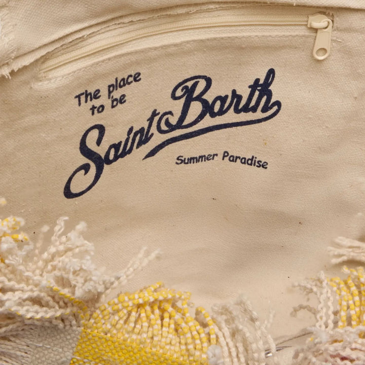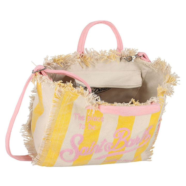 Add a touch of island charm to your girls outfit with this white and yellow jute phone bag from MC2 Saint Barth. Crafted from natural jute fabric, this stylish mini bag features a vibrant yellow base with crisp white accents, perfect for sunny days a
