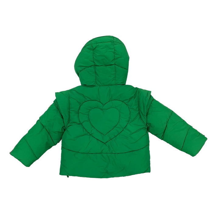The green puffer jacket is a kids dream accessory Made from lightweight, water-resistant fabric and filled with down insulation, it has engineered seams to give it shape. It features hidden pockets and front double entry pockets with exposed zippers