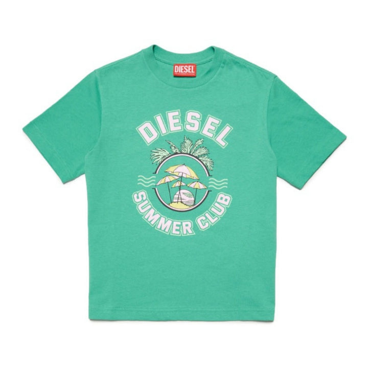 Oversized crew-neck, short-sleeved t-shirt with contrasting print on the front Diesel Summer Club. Made of 1% cotton.