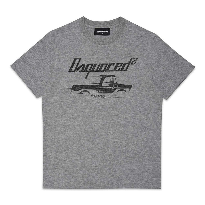 This classic printed t-shirt in grey color by DSQUARED2 is a definite buy. The brand logo print with the utility truck print is giving this truck a classy look. For utmost comfort, this t-shirt is designed with short sleeves and with the use of breat