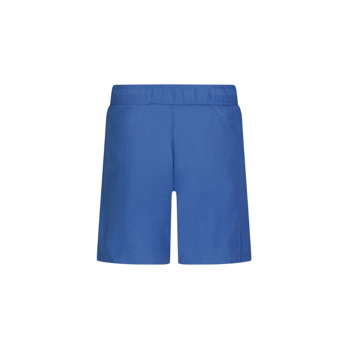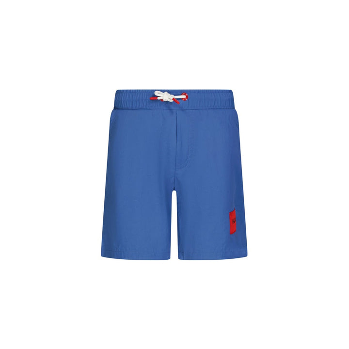 Boys logo-print swimming shorts from HUGO KIDS featuring blue, logo print to the side, elasticated drawstring waistband and two-tone design. Be mindful to try on swimwear over your own garments.