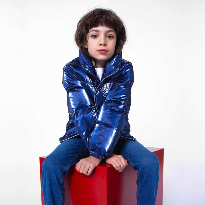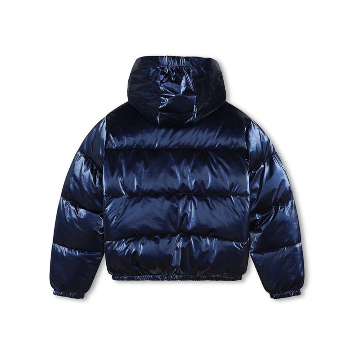 Girls Navy Blue Logo-Print Puffer Jacket