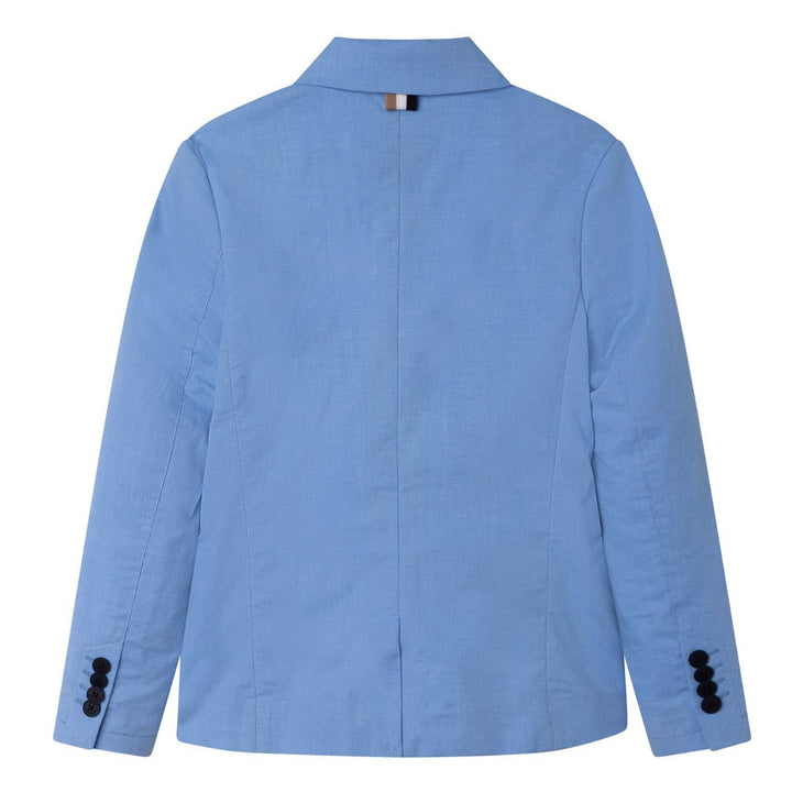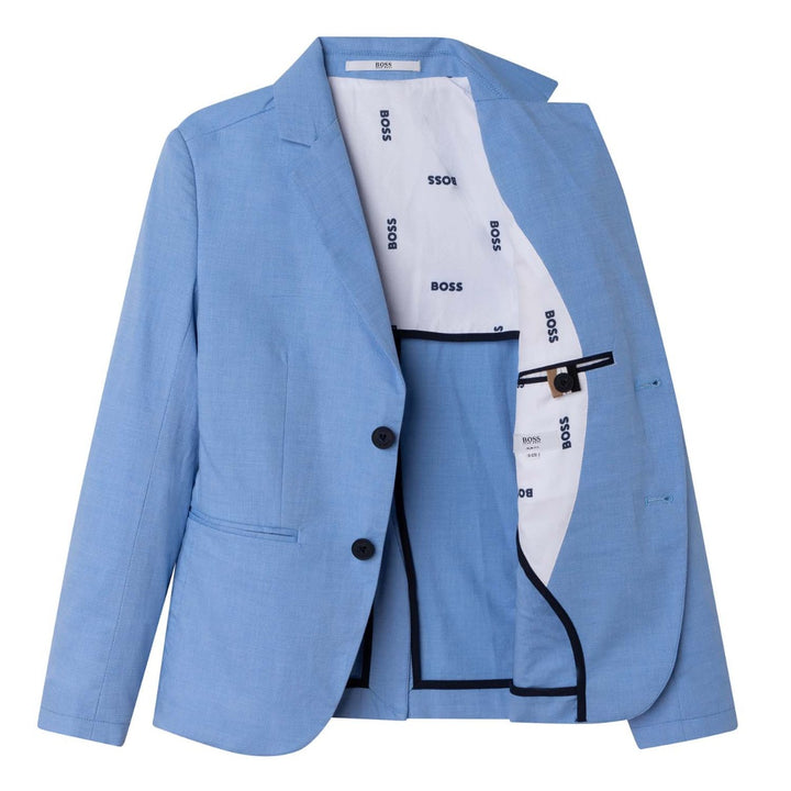 This BOSS suit jacket will be a guaranteed favourite thanks to its button fastening and piped side pockets. It features a serge lining printed with the BOSS logo, along with a brand-stamped metal plaque on the seft breast. Pair it with matching trousers or shorts.