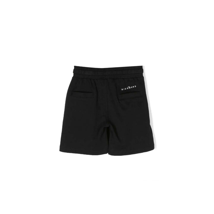 star-print cotton track shorts from JOHN RICHMOND JUNIOR featuring black-red-white, cotton, jersey fleece, star print, drawstring fastening, two side slit pockets, two rear welt pockets and knee-length.
