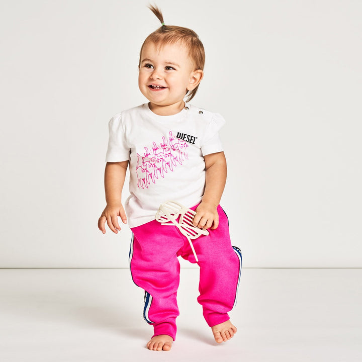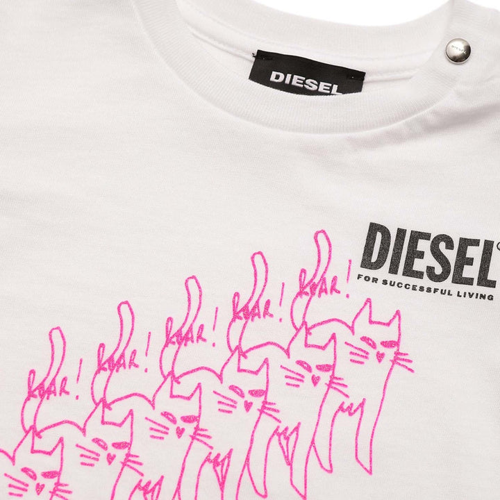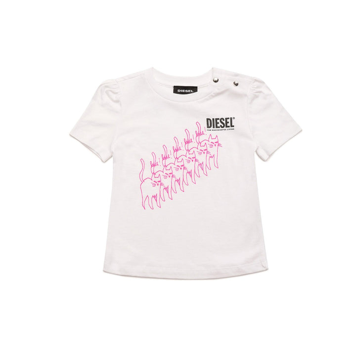 Cotton jersey T-shirt with crew-neck. It features a button snap opening on shoulder and Diesel logo on the front.