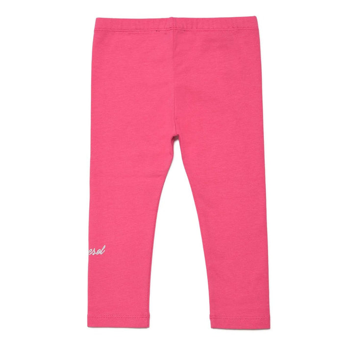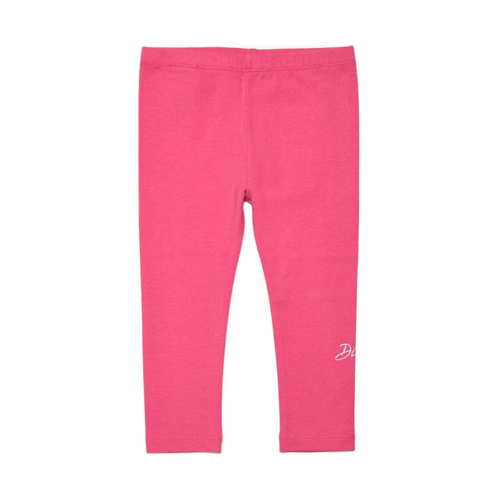 Pink Cotton Leggings With Silver Logo Print