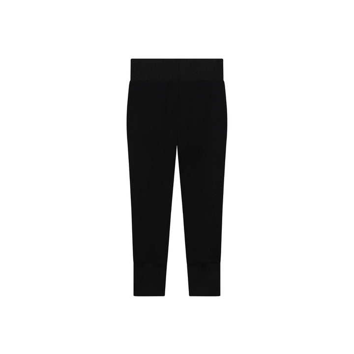 Black logo leggings for girls by Karl Lagerfeld. Made from soft viscose, it features the brands logo print in white on one leg. An elasticated waistband for comfortable fit.