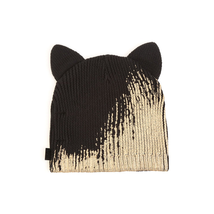 Knitted from black thread, this Karl Lagerfeld Kids beanie is detailed with gold-toned metallic effect. The whisker embroidery and cat-ear detailing call to mind Karls beloved pet, Choupette.