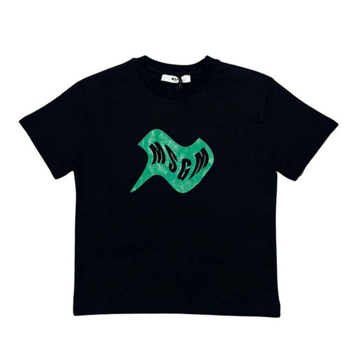 Black cotton T-Shirt for boys and girls by Italian brand MSGM, with a rubberised, stretched box logo in green on the front. Just right for relaxed, casual days, this top is made in comfortable, mid-weight jersey.