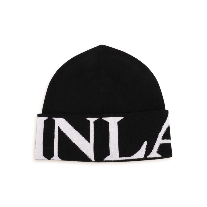 Kids Black Intarsia-Knit Logo Beanie