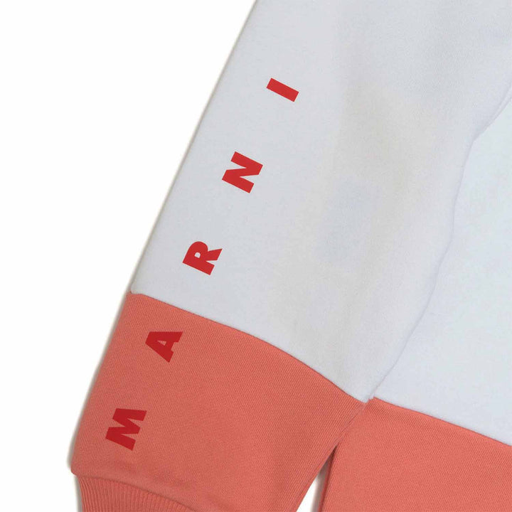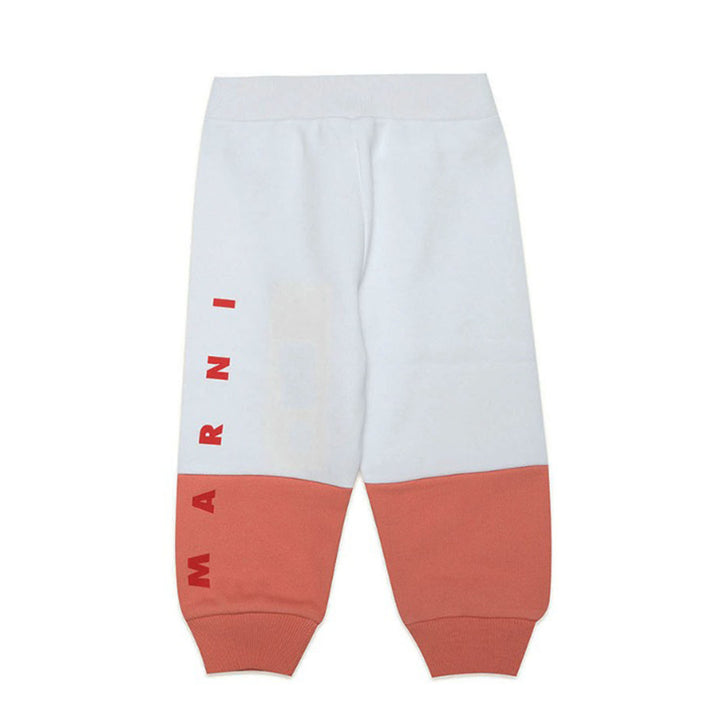 Cotton trousers with elastic waistband and non-elastic ankle cuff. The garment reinterprets the colour block concept giving it a contemporary meaning of simplicity and lightheartedness, with Marni logo on the leg. Made from 1% cotton.