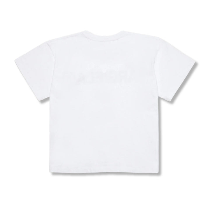 Crew-neck, short-sleeved, cotton jersey T-shirt. Features a contrasting broken effect logo on the front and distinctive stitching on the back.