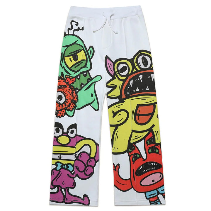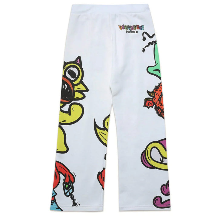 Unisex White Monsters Print Trousers