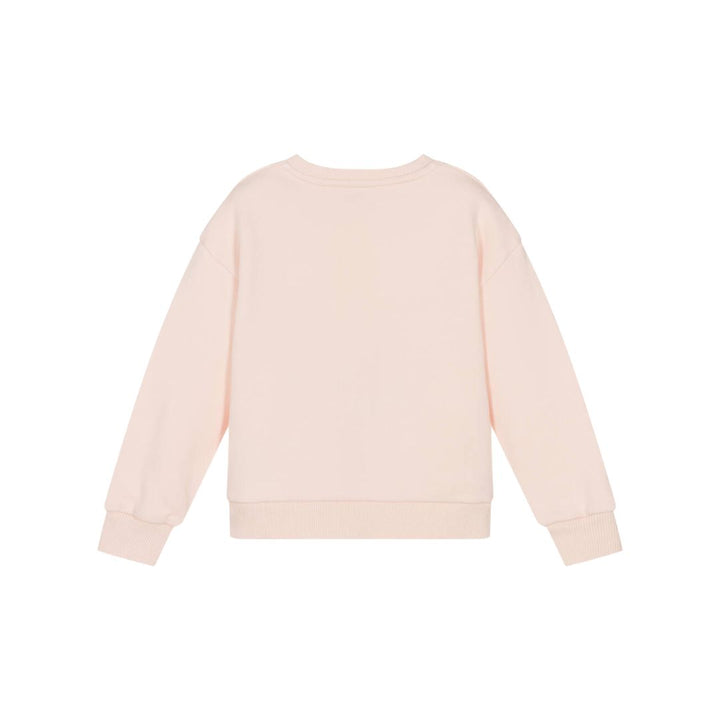 Pretty pale pink cotton sweatshirt for girls by Lanvin, inspired by the adult collection. Printed on the front is an adorable bunny rabbit with gold sparkly details, with the House's name embroidered in navy blue underneath. Made from soft, stretchy jersey, this sweatshirt has a fleecy interior for additional comfort.