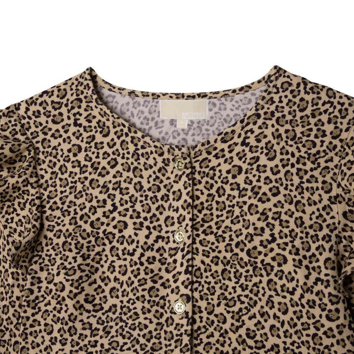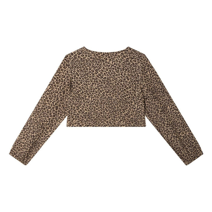Leopard print crop top by MK with a golden button in front and a full sleeve. It gives a sleeke and chic look to your girls.