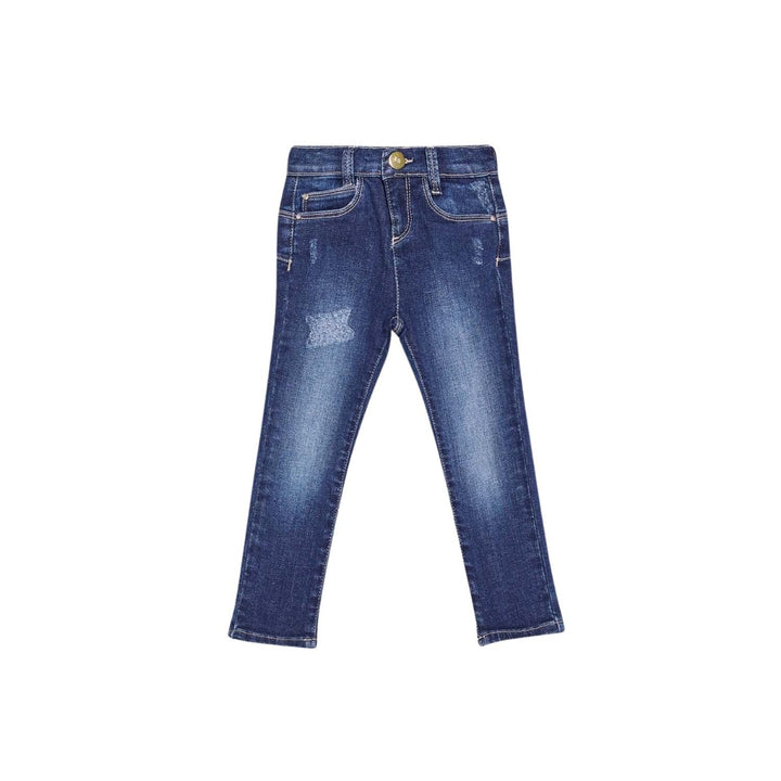Trendy and comfortable, this pair of jeans is going to be an interesting addition to your kids closet. The style features a single button closure, a zipper fly and a five-pocket styling. These jeans additionally feature a washed finish with notable distressing that further enhances their look. The soft and high-quality cotton fabric used will provide marvellous breathability and skin feel.