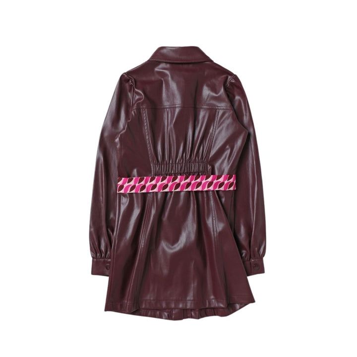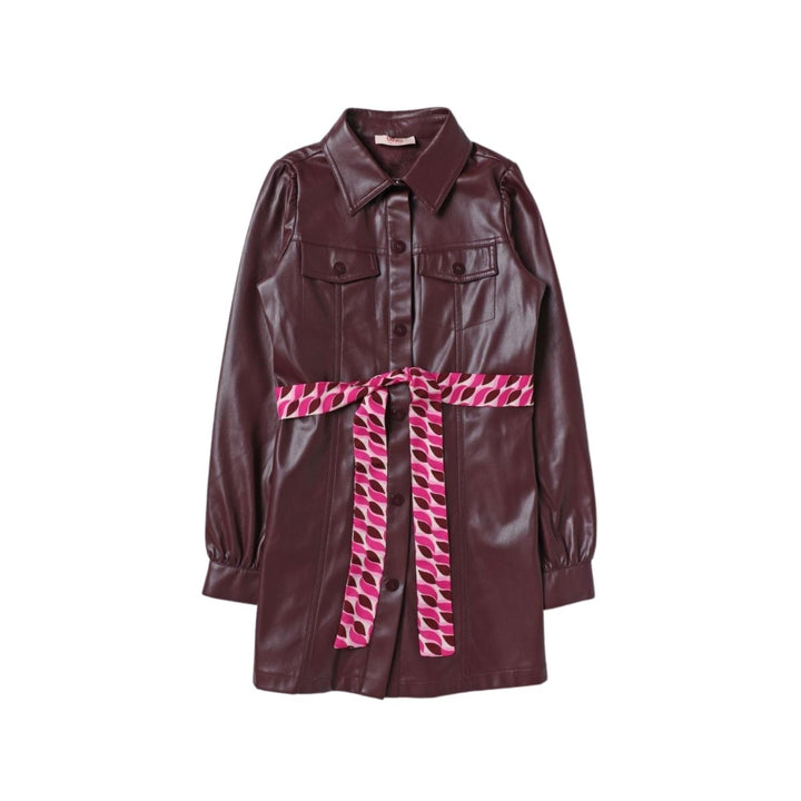Girls Brown Faux Leather Dress With Belt Bordeaux