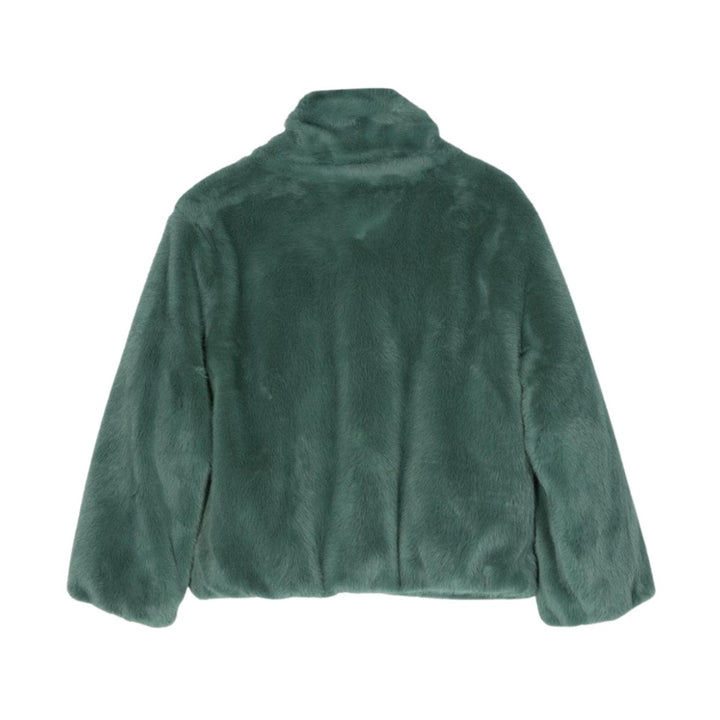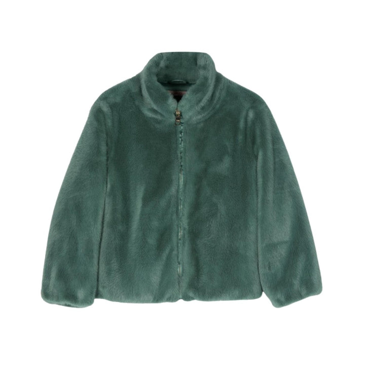 Girls Green Zip-Up Faux-Fur Jacket