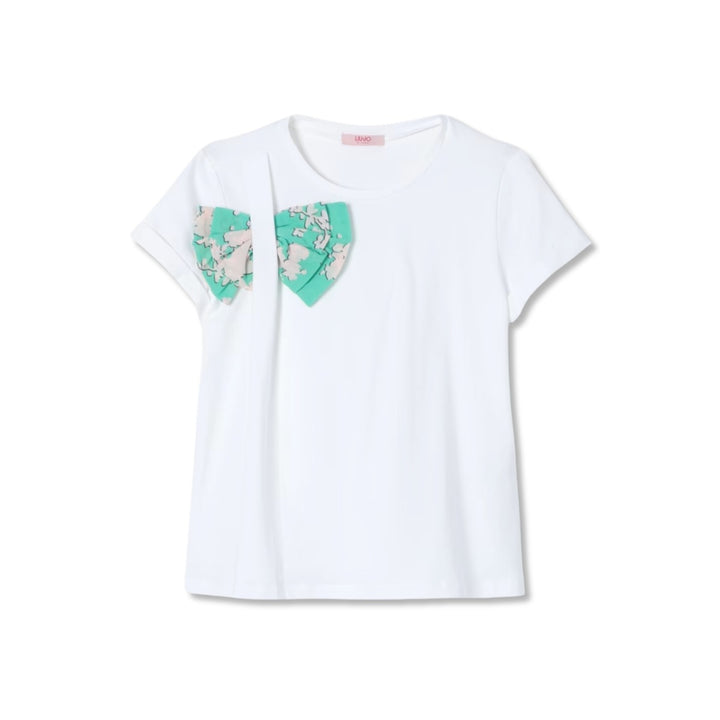 Girls White Bow-Patch Cotton T-Shirt