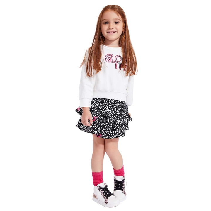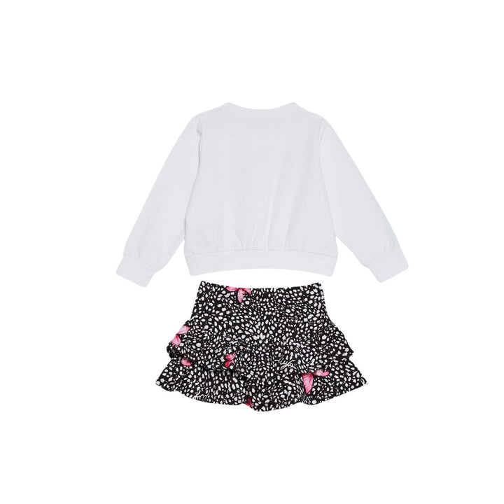 Lio Juo skirt and top set in black leopard printed skirt and a printed white tee. It makes it look beautiful when paired with a high knee pair of boots.