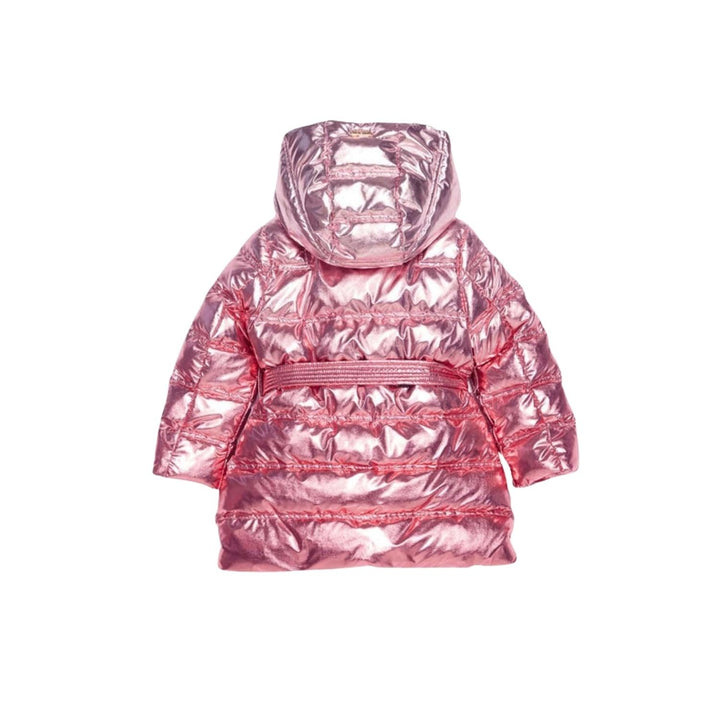 With its bright ombre design, this coat is both cool and practical. Comfy regular fit, with a cosy hood, zip-through fastening and contrast lining. The pink color gives it a nice effect with the shinny polyster fabric of the jacket.