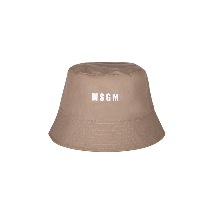 Beige bucket hat for boys and girls by Italian brand MSGM, with a White logo print on the front. Stylish and versatile, it is made in soft canvas with a sturdy twill lining.