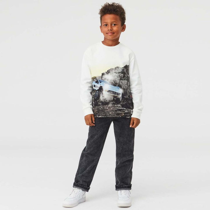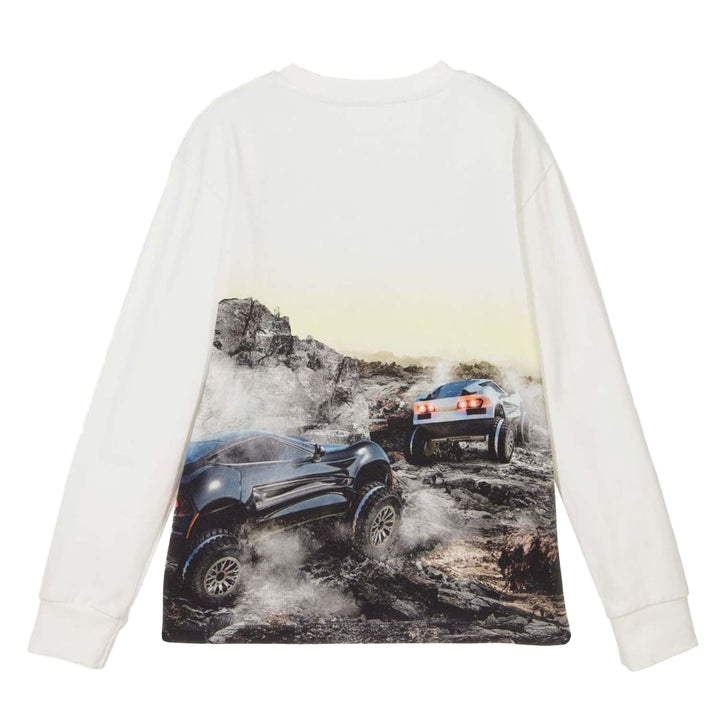 Rexton is a long sleeve white top with a print of off-road cars on the front. This Molo product is GOTS certified organic, which means that it is made with certified organic materials and produced under the strictest social and environmental standards throughout the entire manufacturing process. In addition, the GOTS certification secures that the product is free of hazardous chemicals. This Molo product is GOTS certified organic by Ecocert Greenlife, certification number 197496.