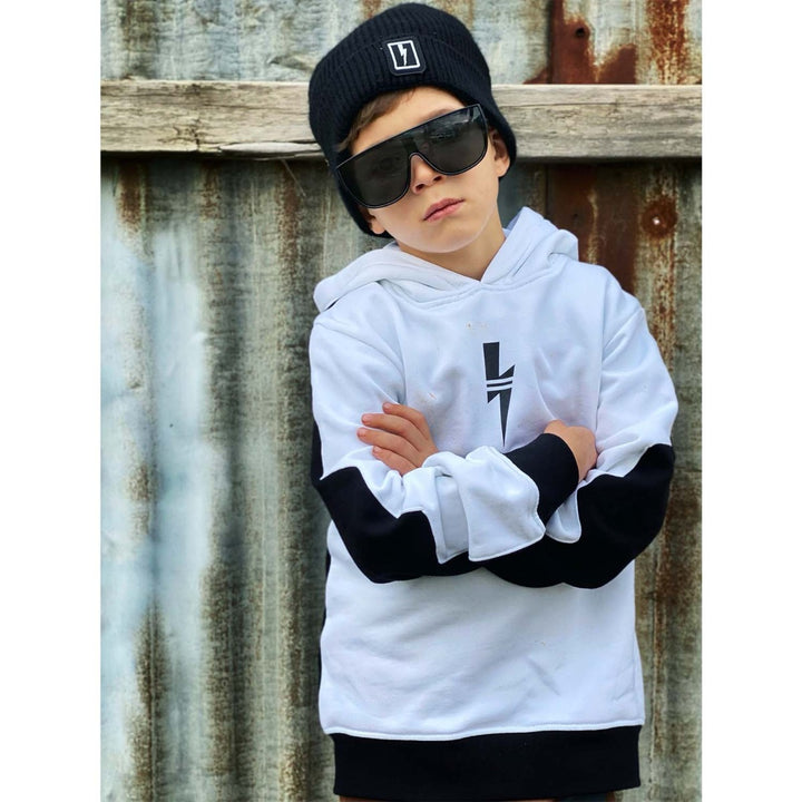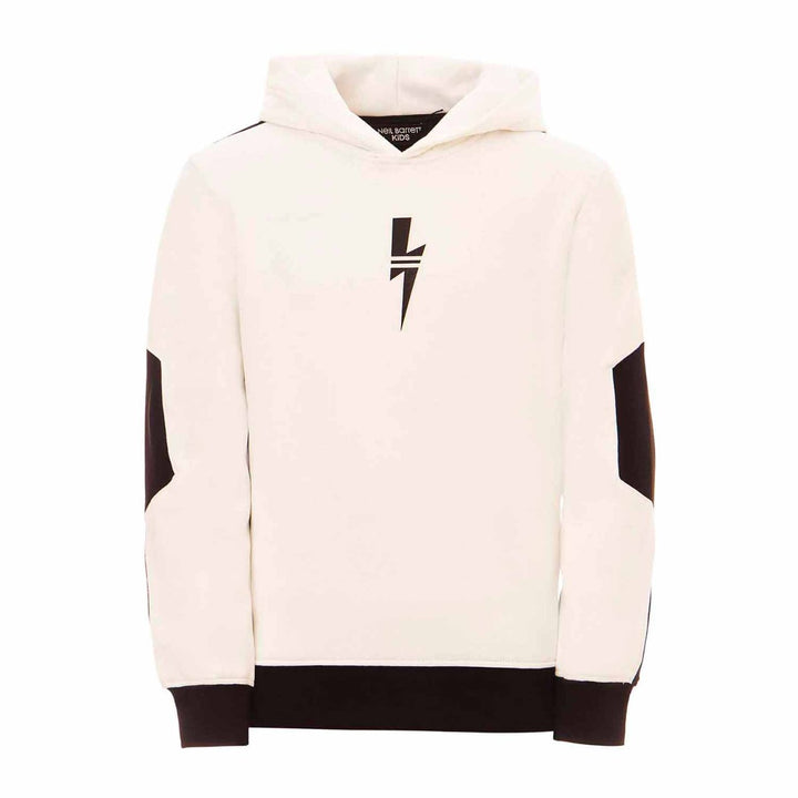 Boys White & Black Color Block Cotton Hoodie