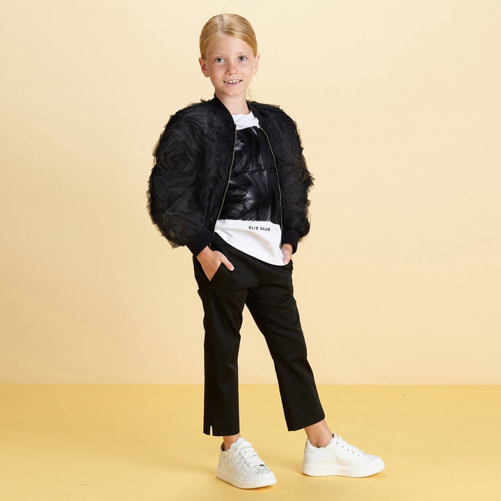 When your search is for a stylish yet comfortable t-shirt for your daughter, you can’t miss this unique one by Elie Saab. It’s a stylish white t-shirt that is designed with black net ruching on the front which is simply enhancing the style factor of the t-shirt. It is perfect to team up with a pair of shorts, denim pants, skirts or any favorite bottom wear.