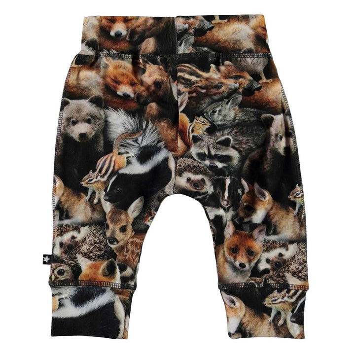 Sammy is a pair of brown baby trousers with a print of animals of the forest. They have a wide elastic rib at the waist and legs and visible stitching in the front that gives them a sweatpants look.This Molo product is GOTS certified organic, which means that it is made with certified organic materials and produced under the strictest social and environmental standards throughout the entire manufacturing process. In addition,the GOTS certification secures that the product is free of hazardous chemicals. This Molo product is GOTS certified organic by Ecocert Greenlife, certification number 197496.