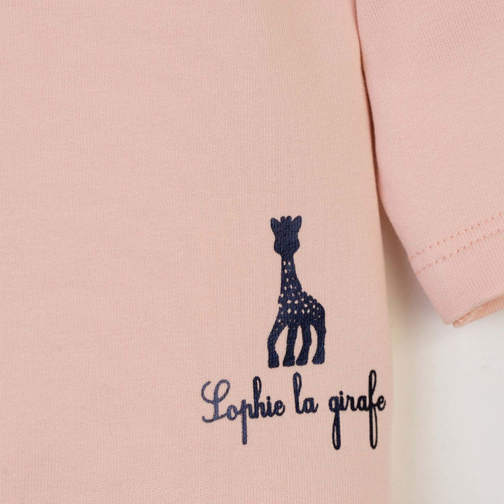 Pink sweatshirt by Sophie the Giraffe. The sweatshirt has a frill on the neckline.