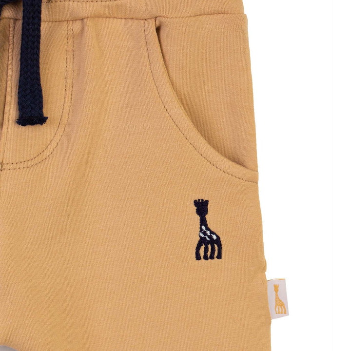 Brown sweatpants by Sophie the Giraffe for baby. The sweatpants have an elasticated waist with a drawstring.