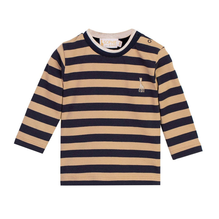 Brown Striped sweatshirt by Sophie the Giraffe. The sweatshirt have a embroidered logo on the chest.