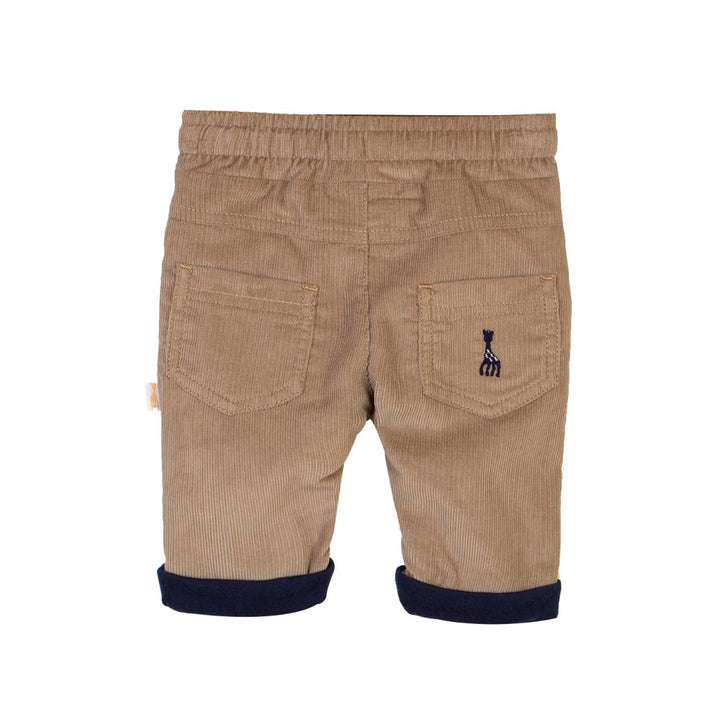 Brown Corduroy pants by Sophie the Giraffe. The pants have an elasticated drawstring waist.Two front pockets, Jersey lining.