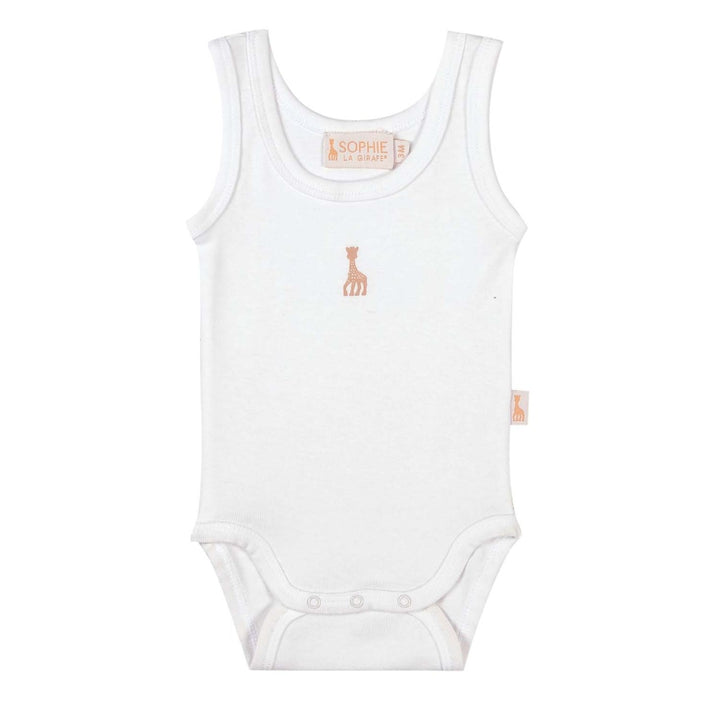 Giraffe Tank BaWhite Giraffe tank baby body by Sophie the Giraffe. The tank baby body has a snap button closure between the legs.by Romper - White