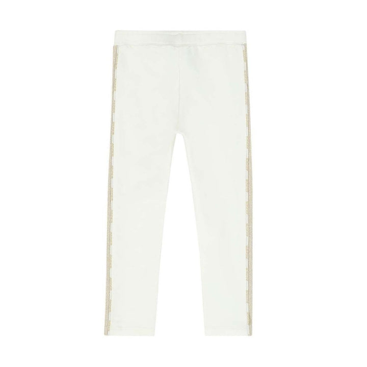 Ivory logo leggings for baby girls by Aigner Kids. Made from soft cotton, it features the brand's iconic horseshoe logo print on the front and gold glittery houndstooth panel with logo tape trim on the side. An elasticated waistband for comfortable fit.