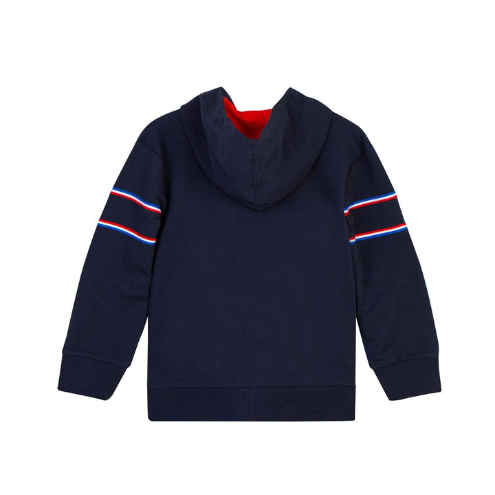 Boys Striped Navy Blue Hooded Jacket