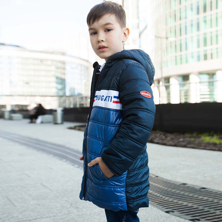 Bugatti Junior Jacket with Hood, with Rubber Badge and Zipper, inserted stripe.