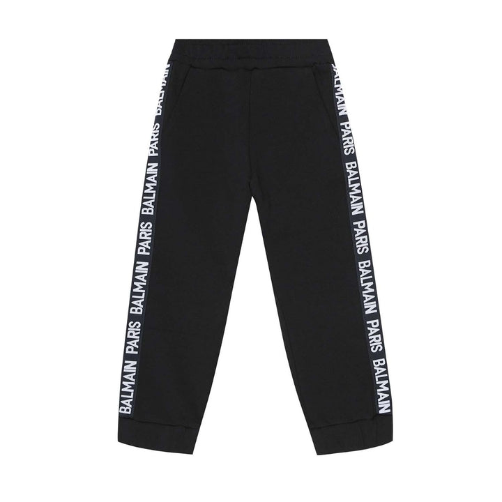 These trackpants from Balmain Kids are crafted in Portugal from black cotton French terry. They feature the label's logo in contrasting white down either side and offer an elasticated waistband, which is echoed in the cuffs, and slit pockets.