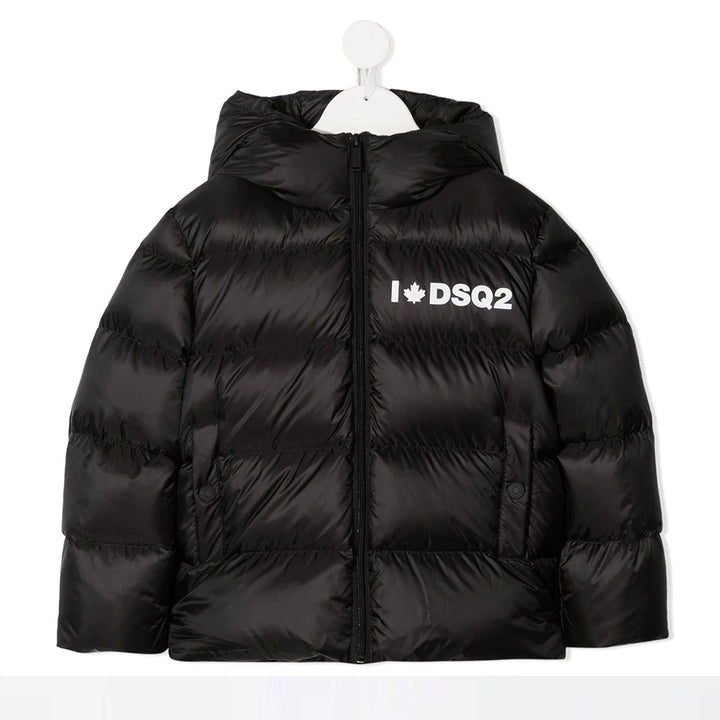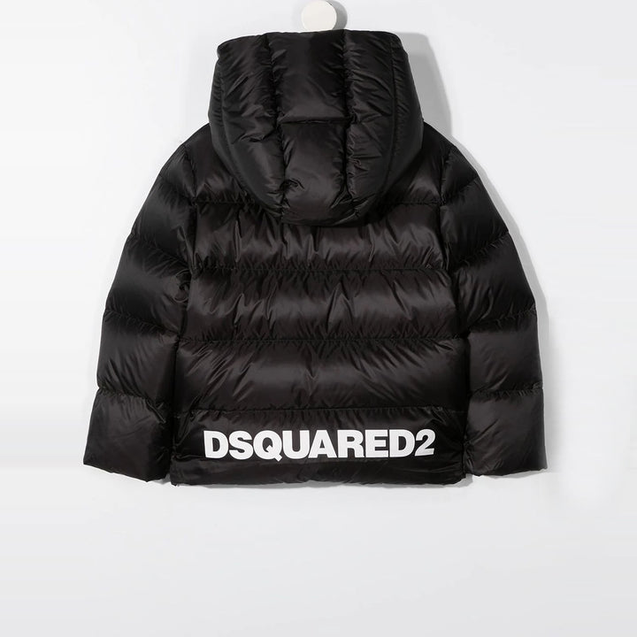 Keep them warm by simultaneously keeping their cool, with this feather down logo padded coat from DSQUARED2 KIDS. It features down-feather filling, classic hood, quilted finish, long sleeves, padded design, logo print at the chest and logo print to the rear.