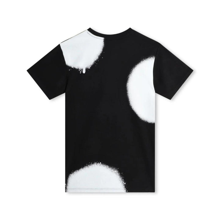 Boys black organic cotton T-shirt by MARC JACOBS, printed with bold, black, spray paint dots. This casual short-sleeved top has a classic crew neck and a statement black and blue spray paint logo print across the front.