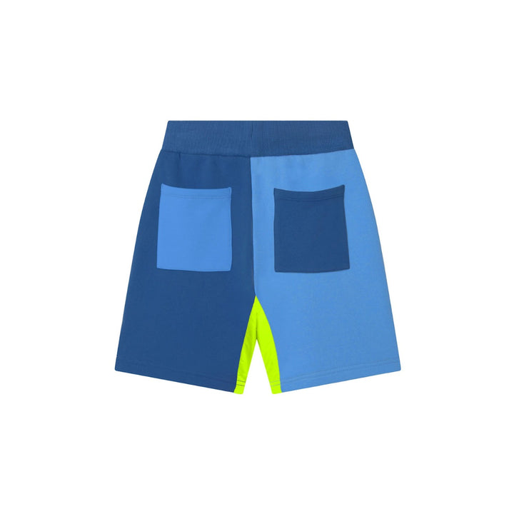 These casual blue shorts for boys, by MARC JACOBS, are made in soft cotton jersey. They have a neon yellow logo print, with a smooth matching insert between the legs for a dramatic designer look. In a cool contrasting design, there are comfortable pockets on both sides. A bright red drawstring tie can be seen on the waist for comfortable, adjustable wear.