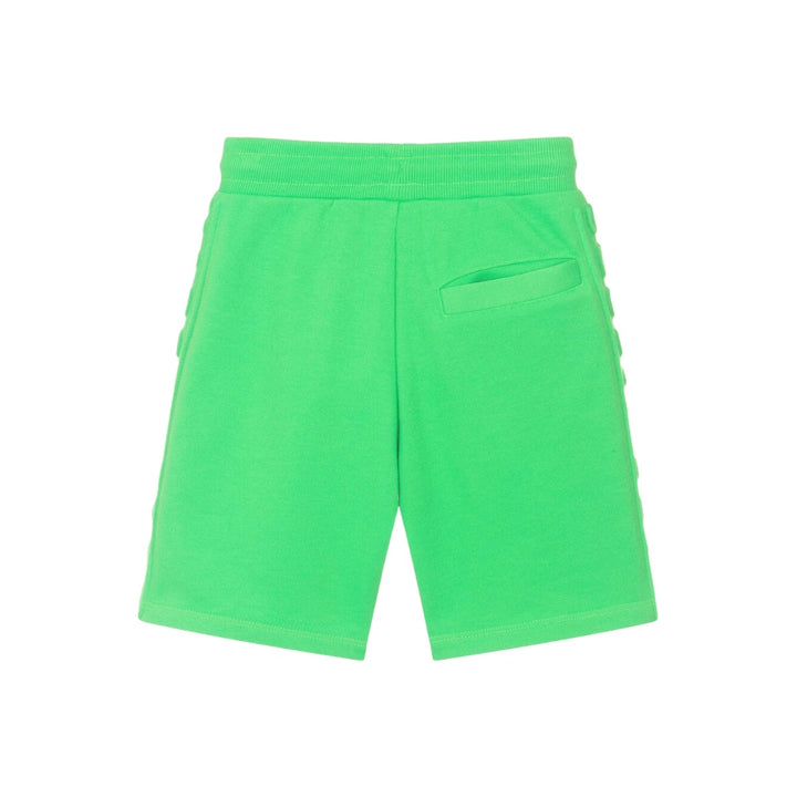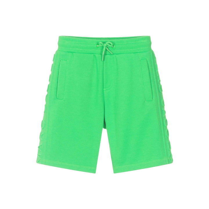 Cool neon green shorts for boys and girls by MARC JACOBS, with embossed tone-on-tone logo on the sides. Comfortable and casual, they are made in soft, mid-weight cotton blend jersey with two pockets on the front and one on the back. Easy to pull on and adjustable to a good fit, they have an elasticated drawstring waistband.