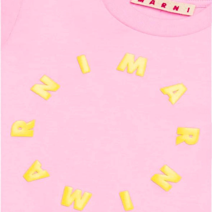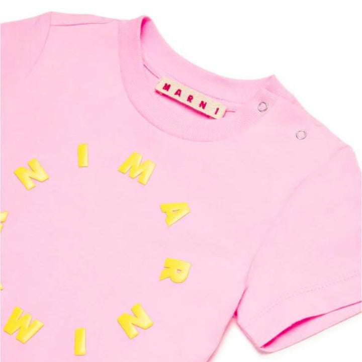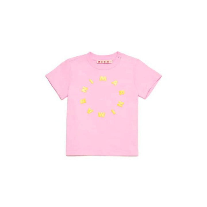 Short-sleeved crew-neck T-shirt in jersey. Featuring the thick Marni Round logo in contrasting color on the front. Practical button closure on the shoulder.