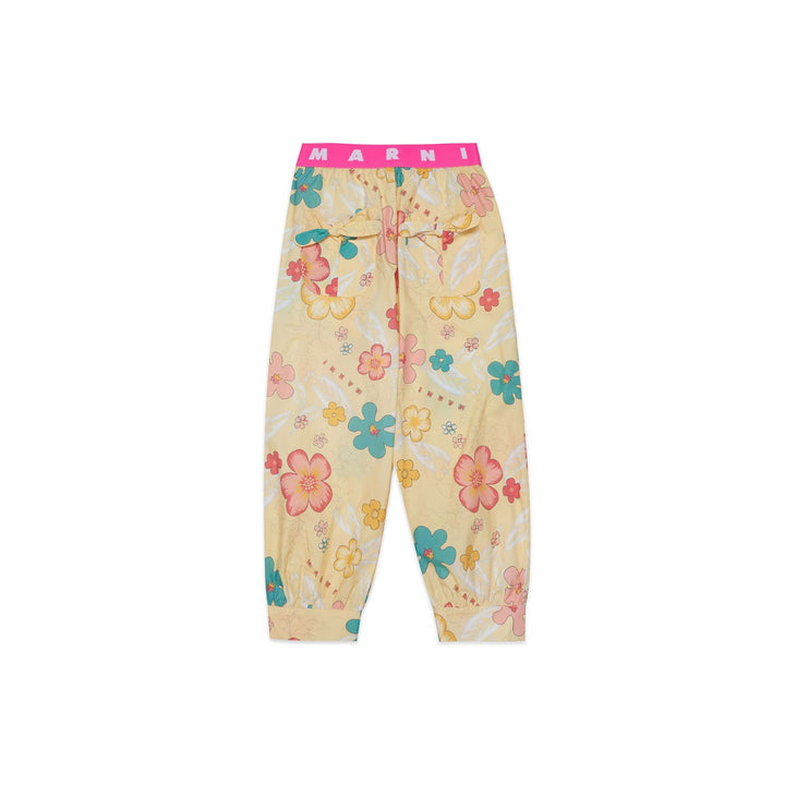 Poplin trousers with logoed elastic and Flowers allover print. The garment picks up on the floral theme and features a wide leg and cuff at the hem.
