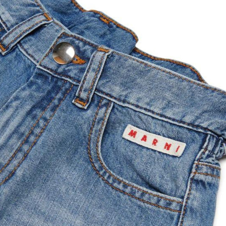 Girls Blue Denim Raw Cut Shorts