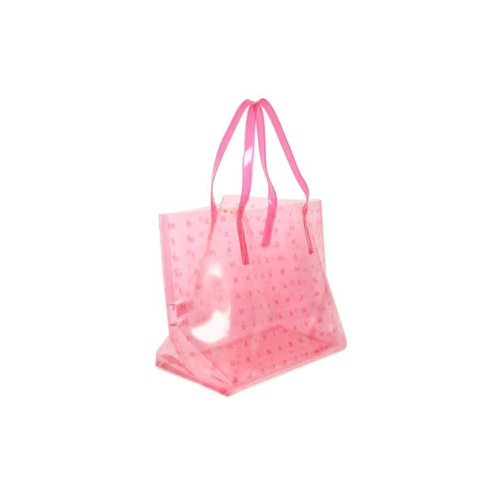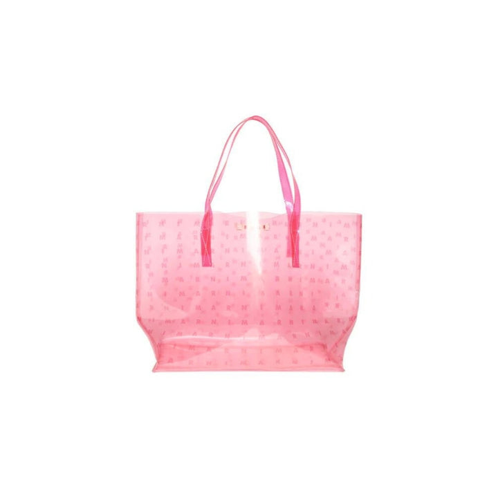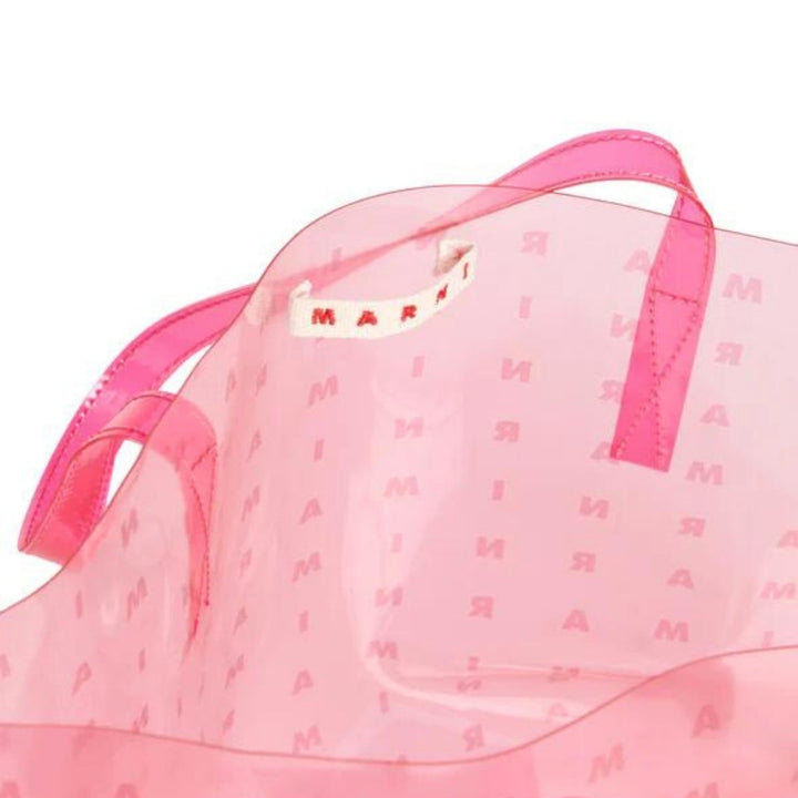 Clear PVC bag branded with allover logo graphics. Matching sleeves. Institutional logo patch on inner. Ideal for various summer occasions and the beach.\